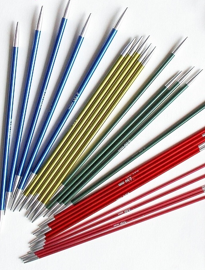 Спицы чулочные "Zing" 20см, алюминий, цветные, 5шт в упаковке